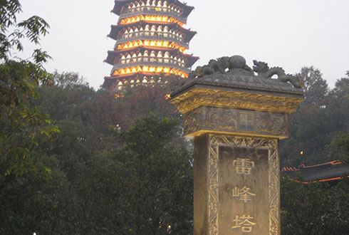 雷峰塔曾是西湖的标志性景点,旧时雷峰塔与北山的保俶塔,一南一北,隔湖相对,有“雷峰如老衲,保俶如美人”之誉,西湖上亦呈现出“一湖映双塔,南北相对峙”的美景。每当夕阳西下,塔影横空,别有一番景色,故被称为“雷峰夕照”。