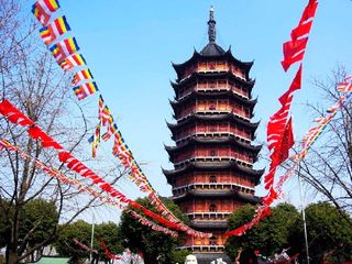 寒山寺,位于苏州城西阊门外5公里外的枫桥镇,历史上寒山寺曾是我国十大名寺之一。寺内古迹甚多,有张继诗的石刻碑文,寒山、拾得的石刻像,文徵明、唐寅所书碑文残片等。寺内主要建筑有大雄宝殿、庑殿(偏殿)、藏经楼、碑廊、钟楼、枫江楼等。